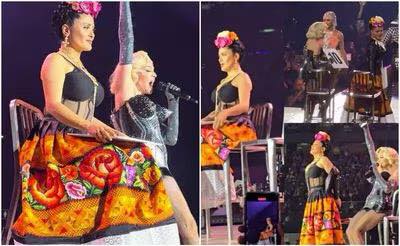 La icónica cantante Madonna tuvo una invitada de lujo durante su último concierto en el Palacio de los Deportes en la Ciudad de México. La reconocida actriz mexicana Salma Hayek se unió al espectáculo, sorprendiendo al público al aparecer caracterizada como Frida Kahlo, la famosa pintora mexicana. Esta aparición se dio durante la interpretación de "Vogue", parte del show donde Madonna suele sumar a sus invitados.