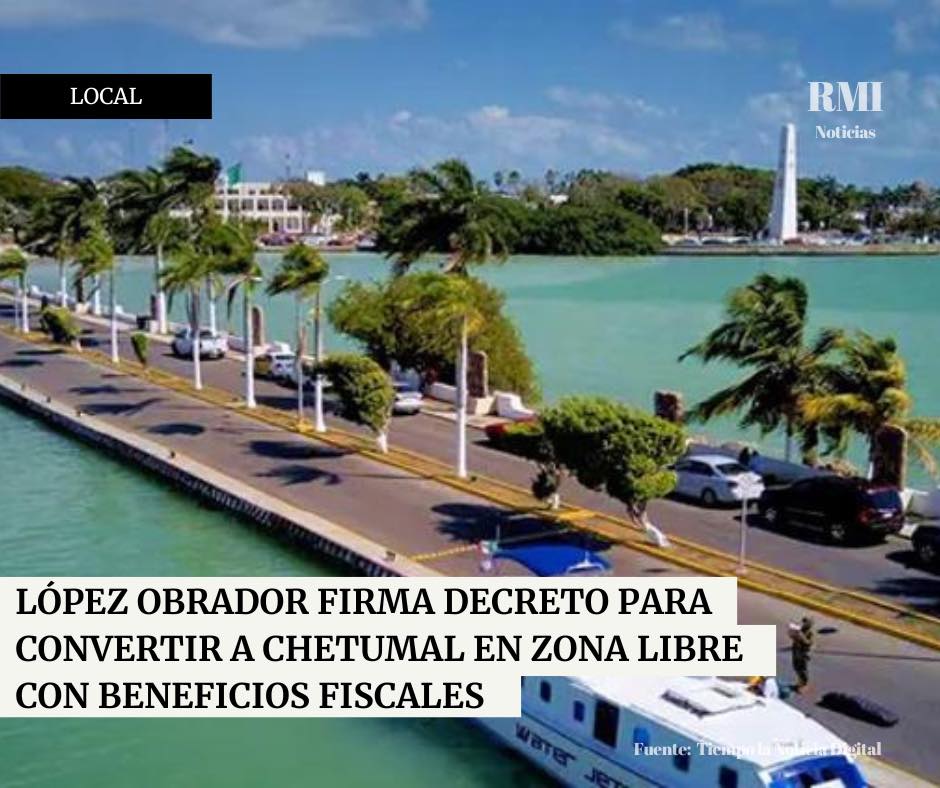 El presidente Andrés Manuel López Obrador ha firmado un decreto que establece a Chetumal, capital de Quintana Roo, como una "zona libre", donde se reducirán varios impuestos. Este decreto entrará en vigor desde ahora hasta el 30 de septiembre, al finalizar el sexenio del presidente López Obrador.