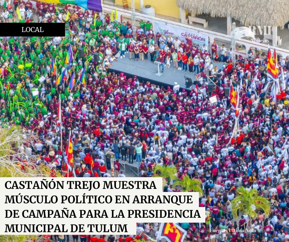 Ante militantes de Morena, Verde Ecologista y Partido del Trabajo, Castañón Trejo afirmó que su visión es la de un gobierno cercano, que escucha, resuelve y trabaja diariamente para transformar. En su discurso inaugural en la Cancha Maya, resaltó los logros alcanzados durante su gestión, así como los proyectos monumentales en marcha, como el Aeropuerto Internacional de Tulum, el Tren Maya y la protección de parques nacionales y playas.