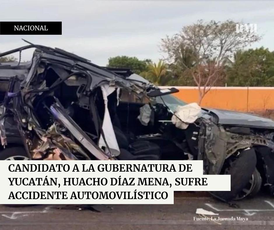 Mérida — La madrugada del miércoles 29 de mayo, Joaquín Huacho Díaz Mena, candidato a la gubernatura de Yucatán por la coalición Sigamos haciendo historia, sufrió un accidente automovilístico en el municipio de Seyé. A través de redes sociales, el candidato confirmó que se encuentra en buen estado general, aunque recibió algunos golpes y estará hospitalizado unos días.