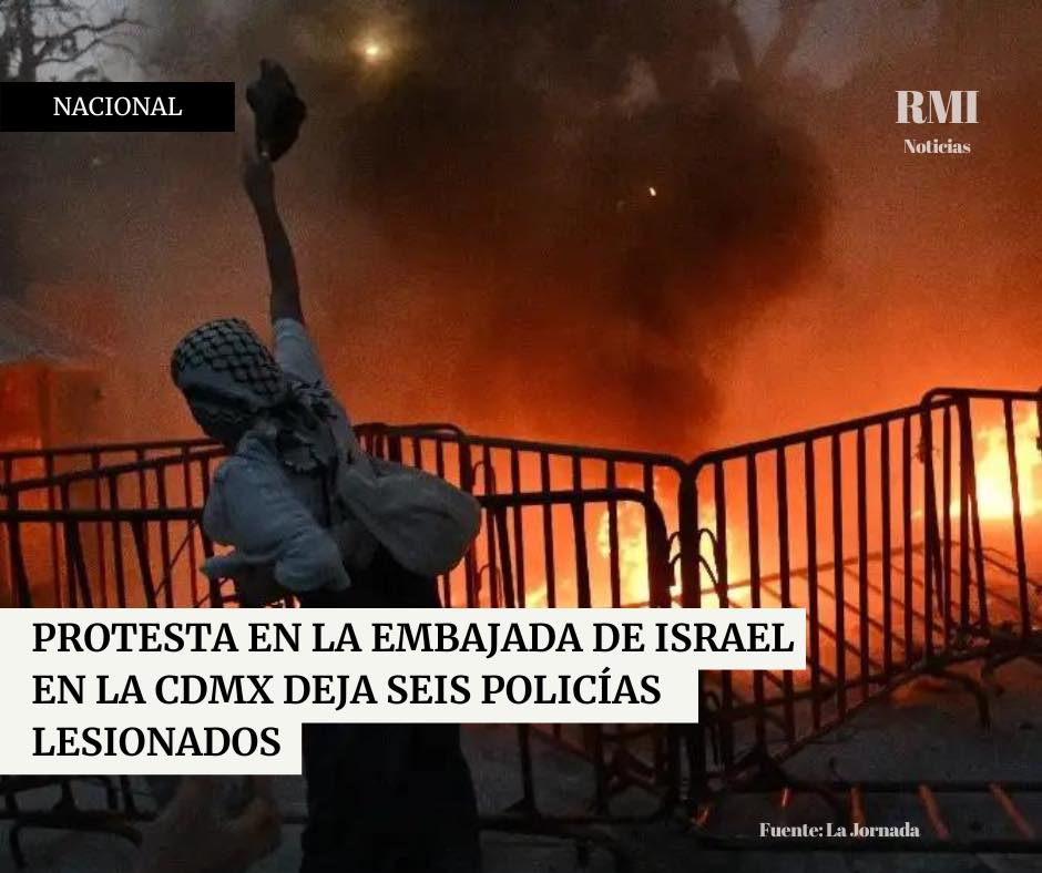 Ciudad de México — Decenas de manifestantes lanzaron objetos incendiarios, bombas de humo, piedras y tabiques contra policías que custodiaban la Embajada de Israel en la Ciudad de México este martes por la tarde. La protesta, en contra del gobierno de Benjamín Netanyahu y en demanda del fin de los ataques a la población civil en Gaza, se tornó violenta cuando un grupo de manifestantes con los rostros cubiertos intentó retirar las vallas colocadas por la policía.