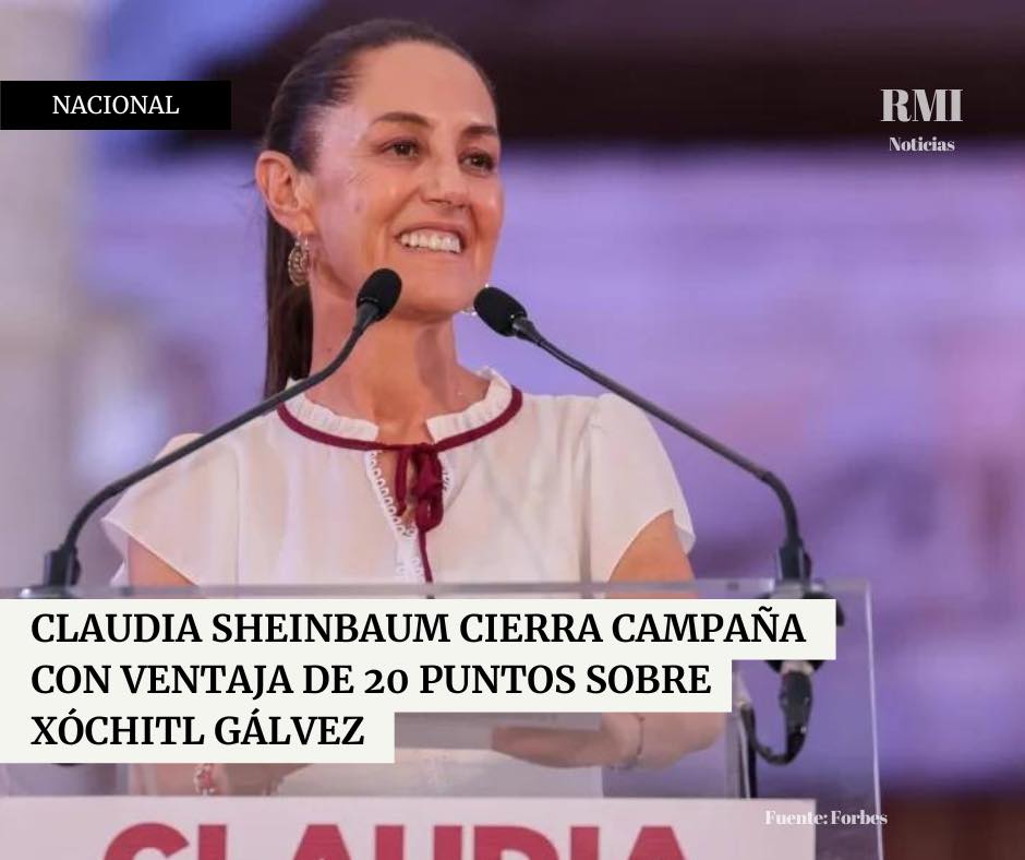 La candidata presidencial de Morena, PT y PVEM, Claudia Sheinbaum, llegó al final de las campañas con una ventaja de 20 puntos porcentuales sobre su principal rival, Xóchitl Gálvez, del PAN, PRI y PRD, según la encuesta del diario Reforma.