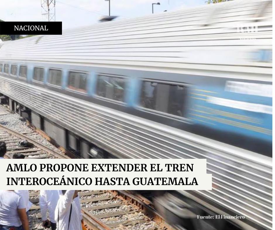 El presidente Andrés Manuel López Obrador anunció que se evaluará la posibilidad de extender la ruta del Tren Interoceánico hasta Guatemala durante una próxima reunión con el presidente guatemalteco Bernardo Arévalo. "Ya nos pusimos de acuerdo para que el tren de Ixtepec-Ciudad Hidalgo podamos continuar hasta Guatemala, de eso vamos a tratar y de otros proyectos importantes que podemos hacer de manera conjunta", declaró López Obrador en su conferencia mañanera del 17 de mayo.