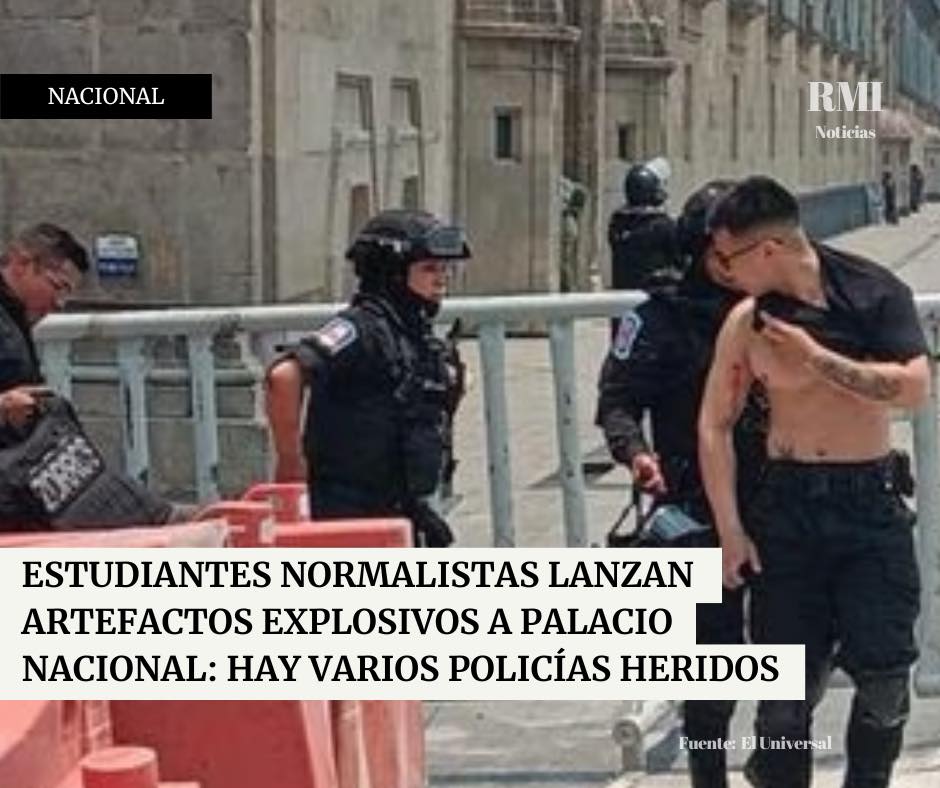 La tarde de este lunes 13 de mayo, estudiantes normalistas de Ayotzinapa lanzaron artefactos explosivos a la fachada de Palacio Nacional, provocando una respuesta de la Policía Militar que resguarda el recinto histórico. La Policía se alistó con escudos y extinguidores en el interior del edificio.