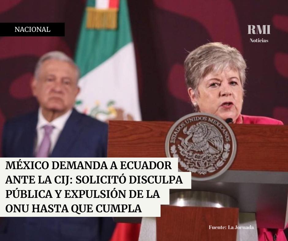 El gobierno mexicano ha presentado una demanda ante la Corte Internacional de Justicia (CIJ) exigiendo que Ecuador se disculpe públicamente y reconozca las violaciones al derecho internacional ocurridas durante la violenta agresión a la embajada mexicana en Quito y a su personal diplomático. En una conferencia de prensa liderada por la canciller Alicia Bárcena y en presencia del presidente Andrés Manuel López Obrador, se anunció la solicitud de expulsión de Ecuador de la Organización de las Naciones Unidas (ONU) hasta que se cumplan estas condiciones.