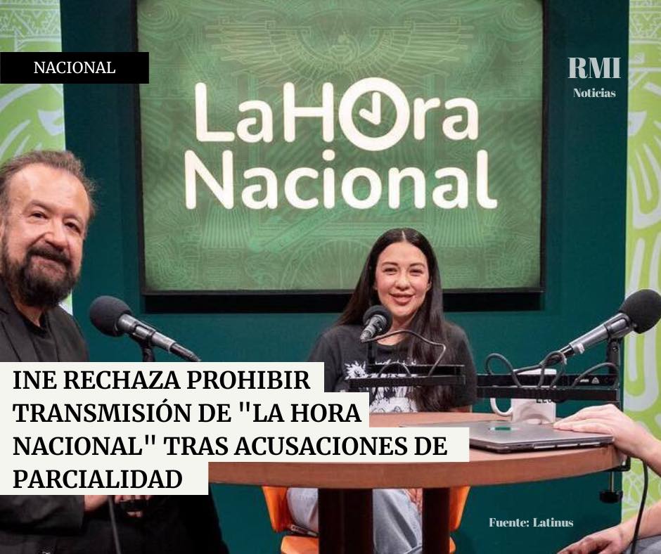 La Comisión de Quejas y Denuncias del Instituto Nacional Electoral (INE) ha rechazado la solicitud del Partido Acción Nacional (PAN) de prohibir la transmisión de "La Hora Nacional", tras considerar que se hacen comentarios en favor de la candidata presidencial de Morena, PT y PVEM, Claudia Sheinbaum.