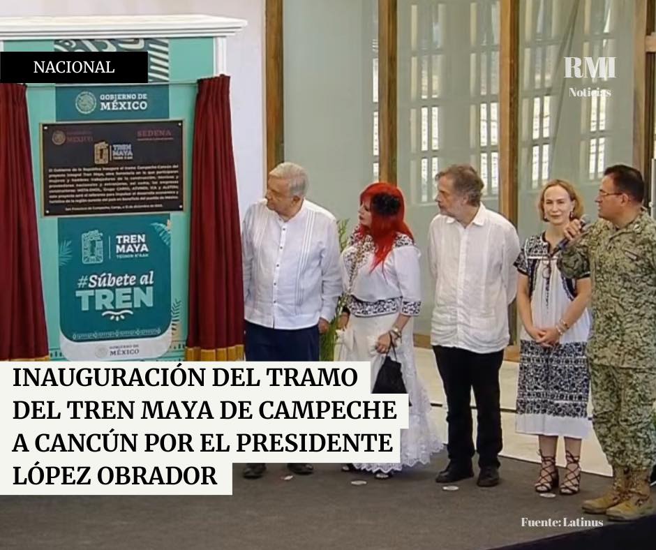 Este viernes 15 de diciembre, el presidente de México, Andrés Manuel López Obrador, encabezó la inauguración del tramo del Tren Maya que conecta Campeche con Cancún. Acompañado por la gobernadora de Campeche, Layda Sansores, el secretario de la Defensa Nacional, Luis Cresencio Sandoval, y otros miembros de su gabinete, el presidente realizó un recorrido para dar inicio a las operaciones de este proyecto ferroviario de gran envergadura.